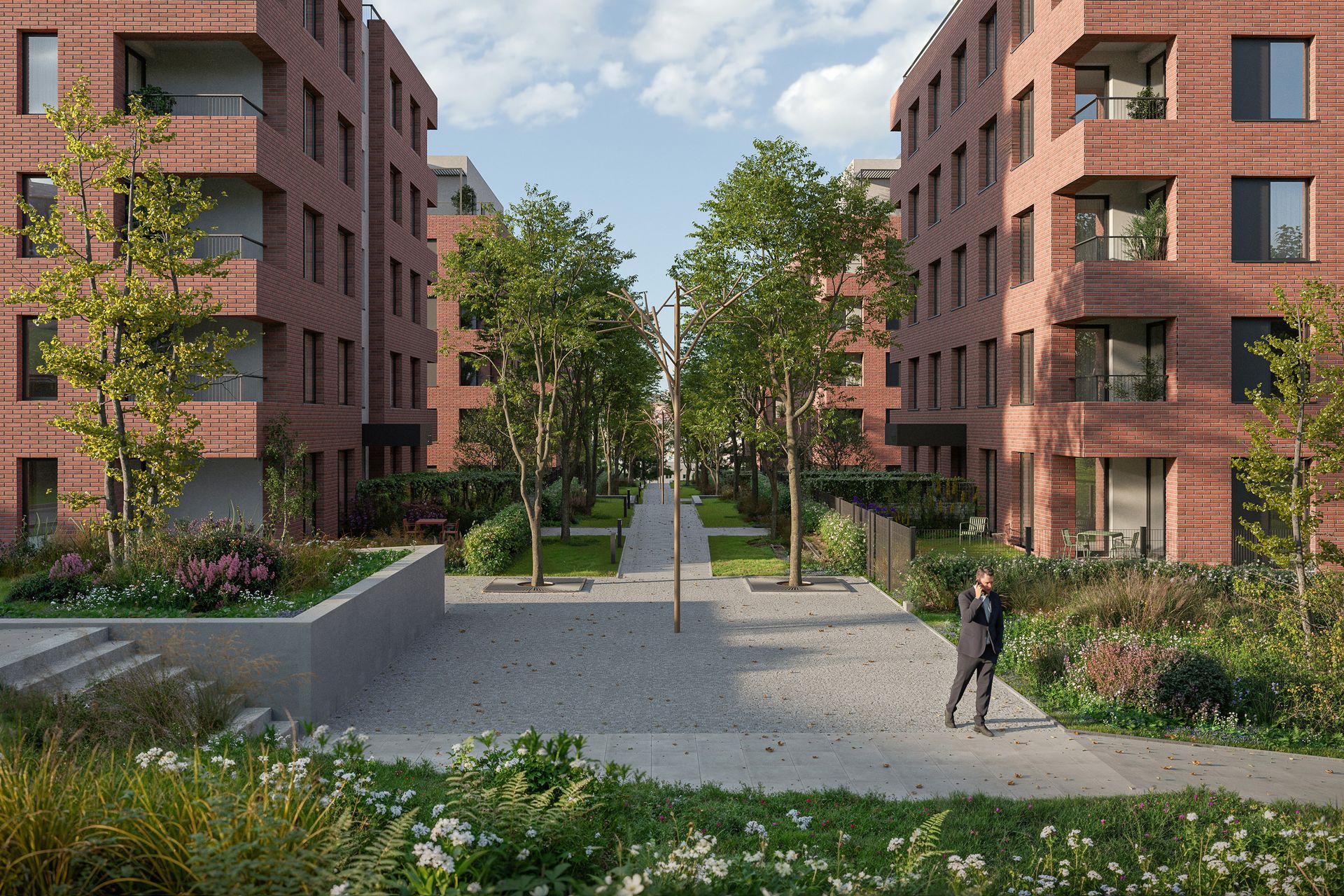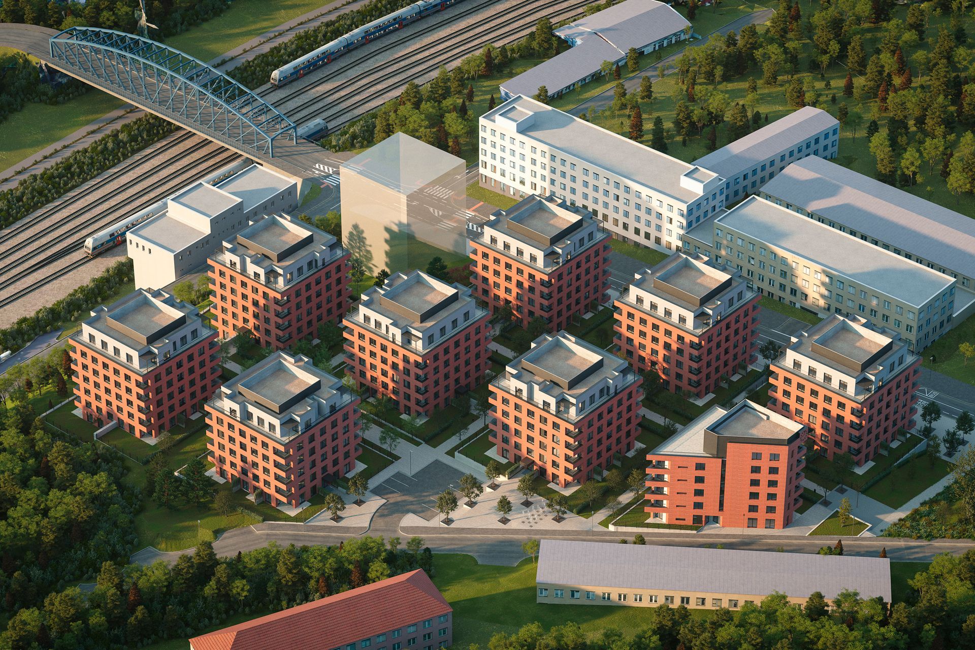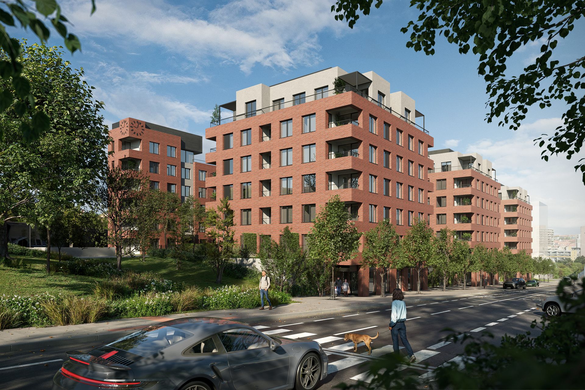 The design connects the historic industrial character of Vršovice with contemporary architecture and carefully considered public spaces.